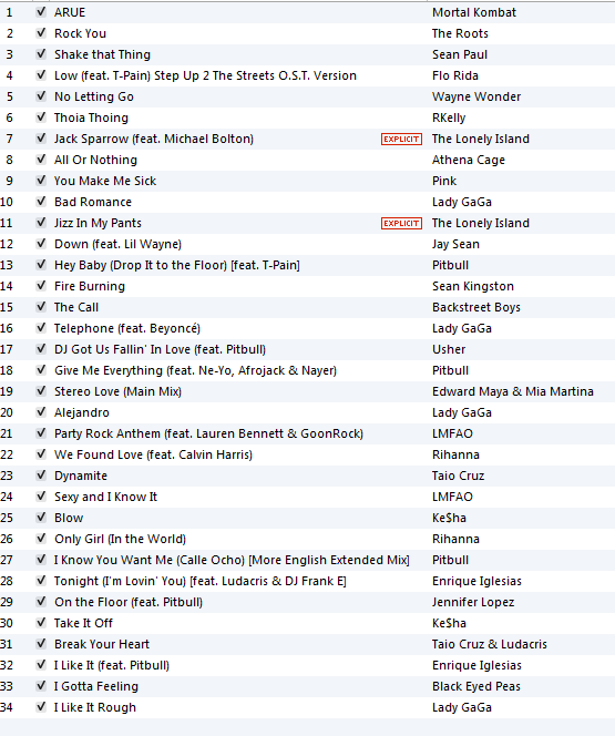 *** This mix does not reflect the entirety of my taste in music. And feel free to make fun of the random, bad, nostalgic songs in there. Yes, there is Backstreet Boys on there.  And yes, FCC, I bought or owned all the songs/CDs 😛