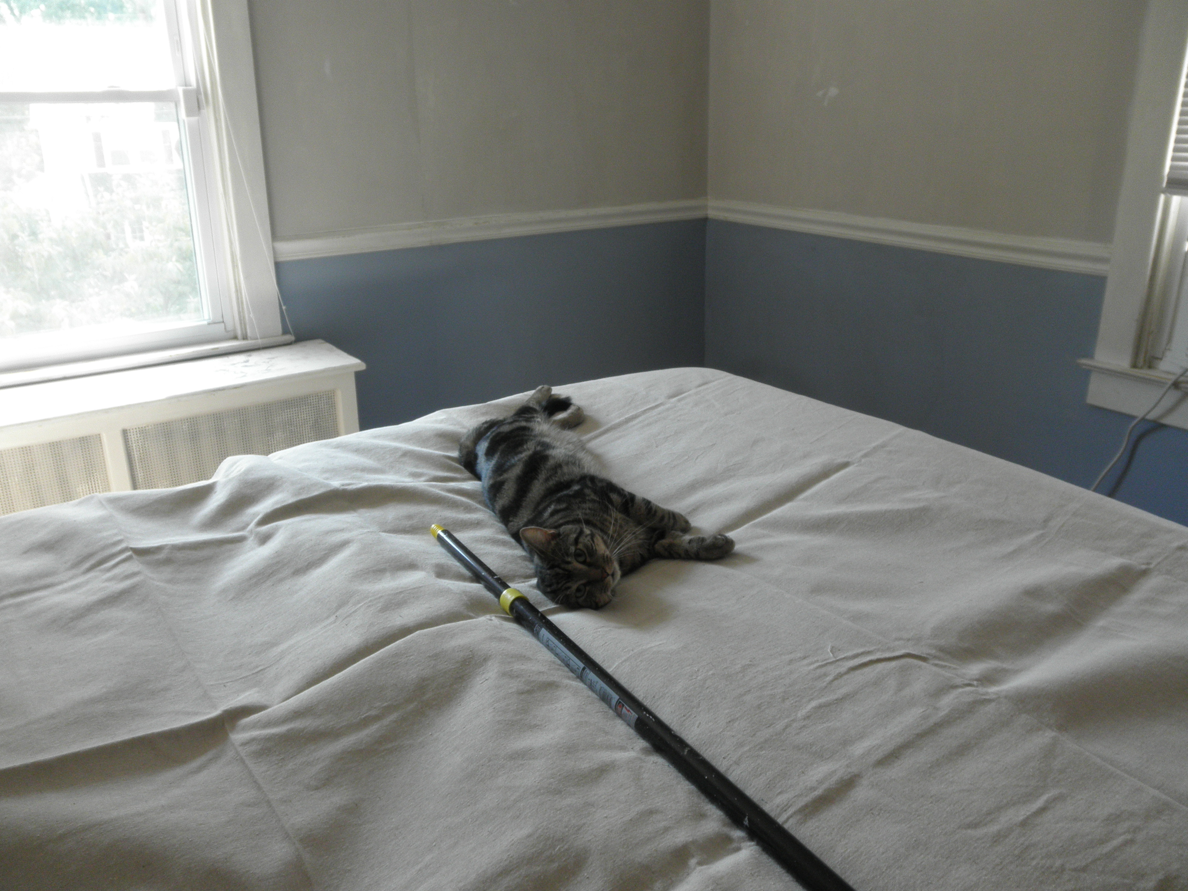 In early July, when my husband had to go away for a training, I took the opportunity to redo the room. I couldn’t have the entire house in chaos – boxes unpacked, furniture clumped into the wrong rooms – and every night good to bed in chaos, too. Of course, the cats were willing to help me.
