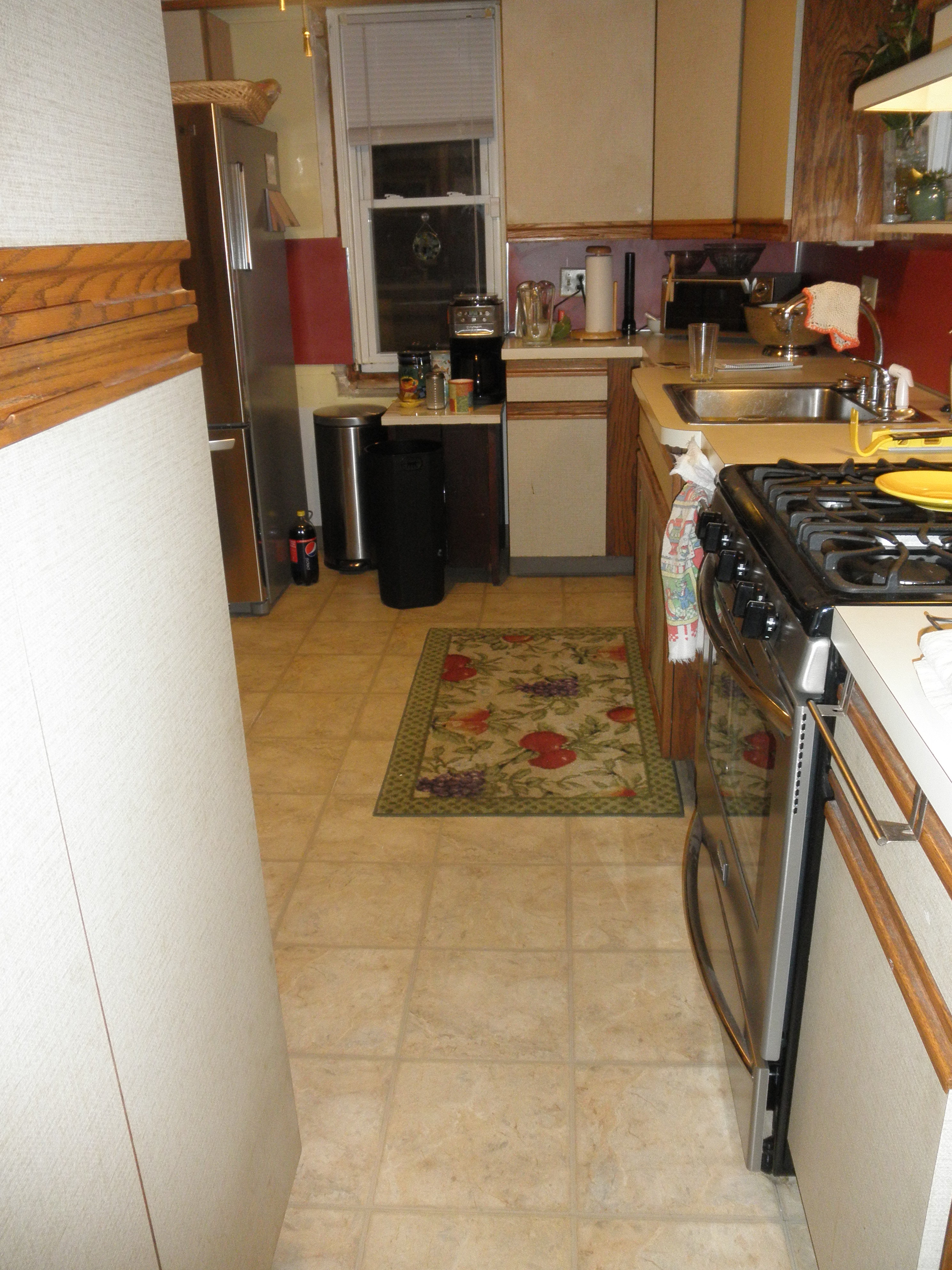 After we moved in, there wasn’t much we changed other than the refrigerator (which the former owners took with them) and the stove (which we replaced because it was so dirty that it smoked when you turned it on). But there was PLENTY we wanted to change. The grease covered cabinets, the worn floors that never looked clean, the never ending dust and dirt in the crevices, and the horrible layout.