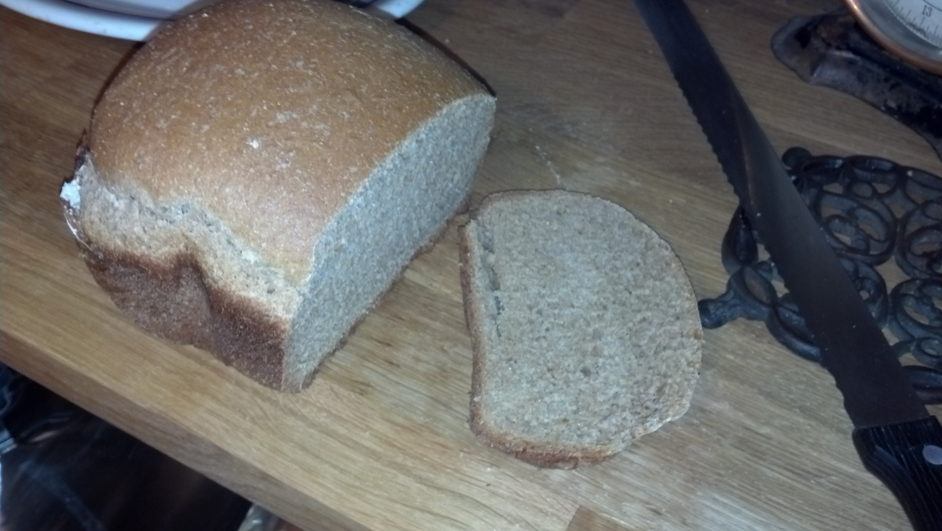 I was nervous that with having tasty bread in the house both the man and I would eat more and put on weight. So far, though, no extra pounds! So I’m continuing my bread making addiction. The plus side? Each loaf costs about $0.60 to make.