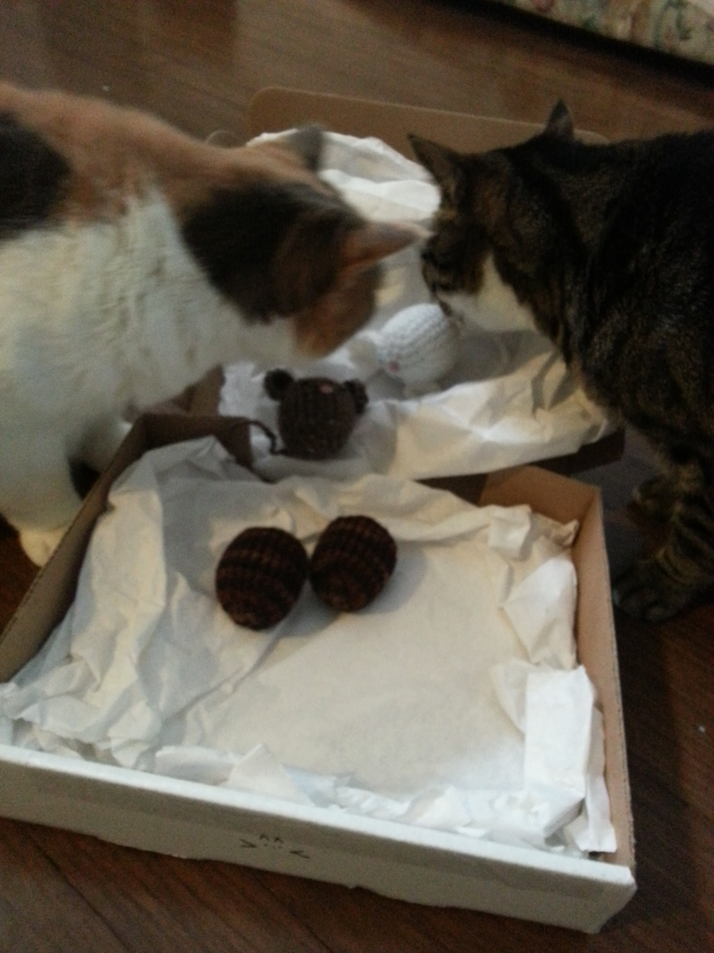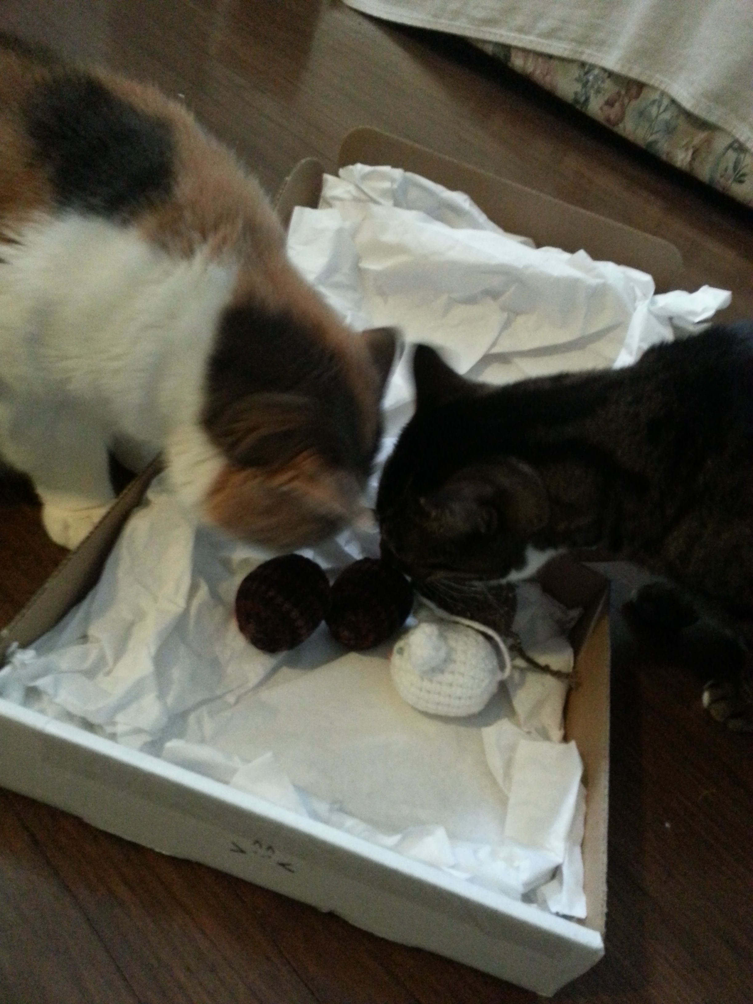 It’s the bitter end of a crazy long Friday for me, but it’s still Feline Friday! This week, we have our first guest kitties! Our guest kitties this week belong to Sarah from Sometimes I Swirl. A few weeks ago, I sent some catnip toys to Conn and Lily, and apparently they were very happy recipients!