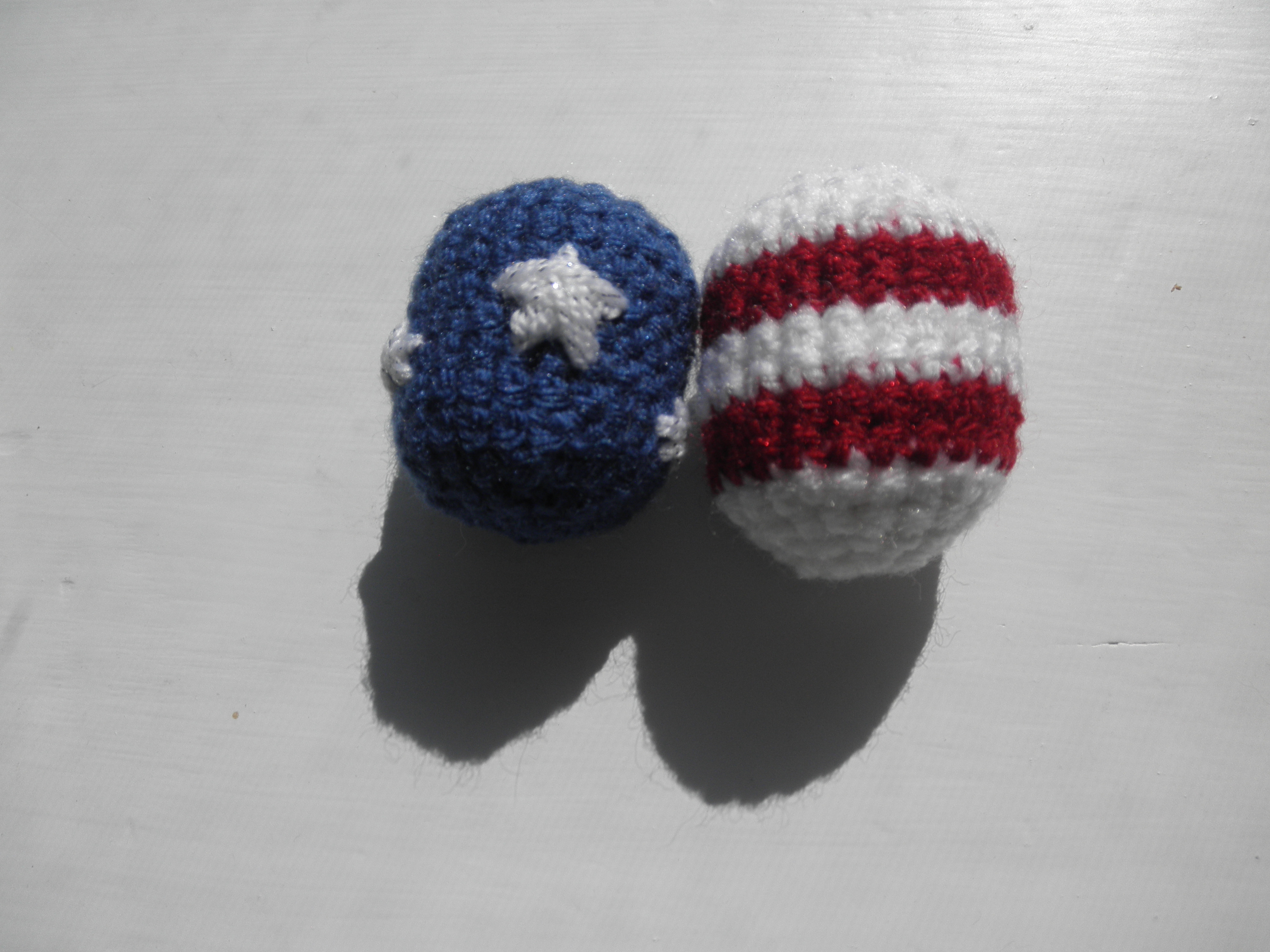 Patriotic catnip balls! I think what I love most about making these (and I rarely make them for my own cats, mostly just my Etsy customers) is that you can use all those tiny amounts of leftover yarn because these really don’t take much at all.