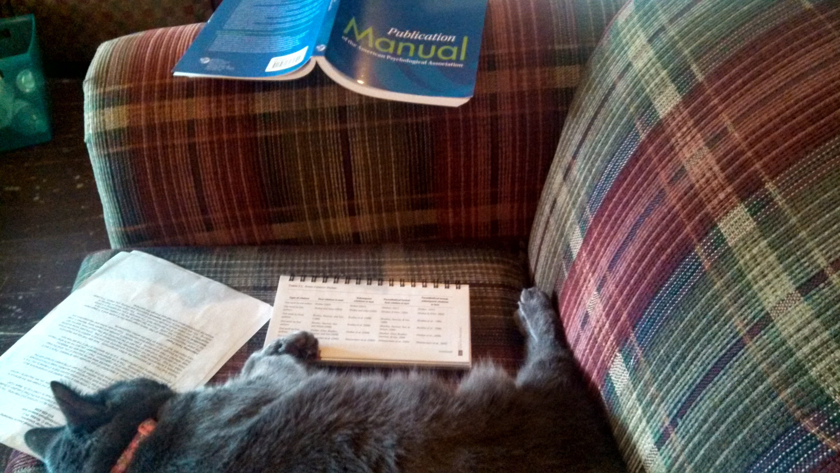 The man was finishing up a massive paper for his internship today, and because I am the APA goddess in our house I was helping. Well, so was Luna.