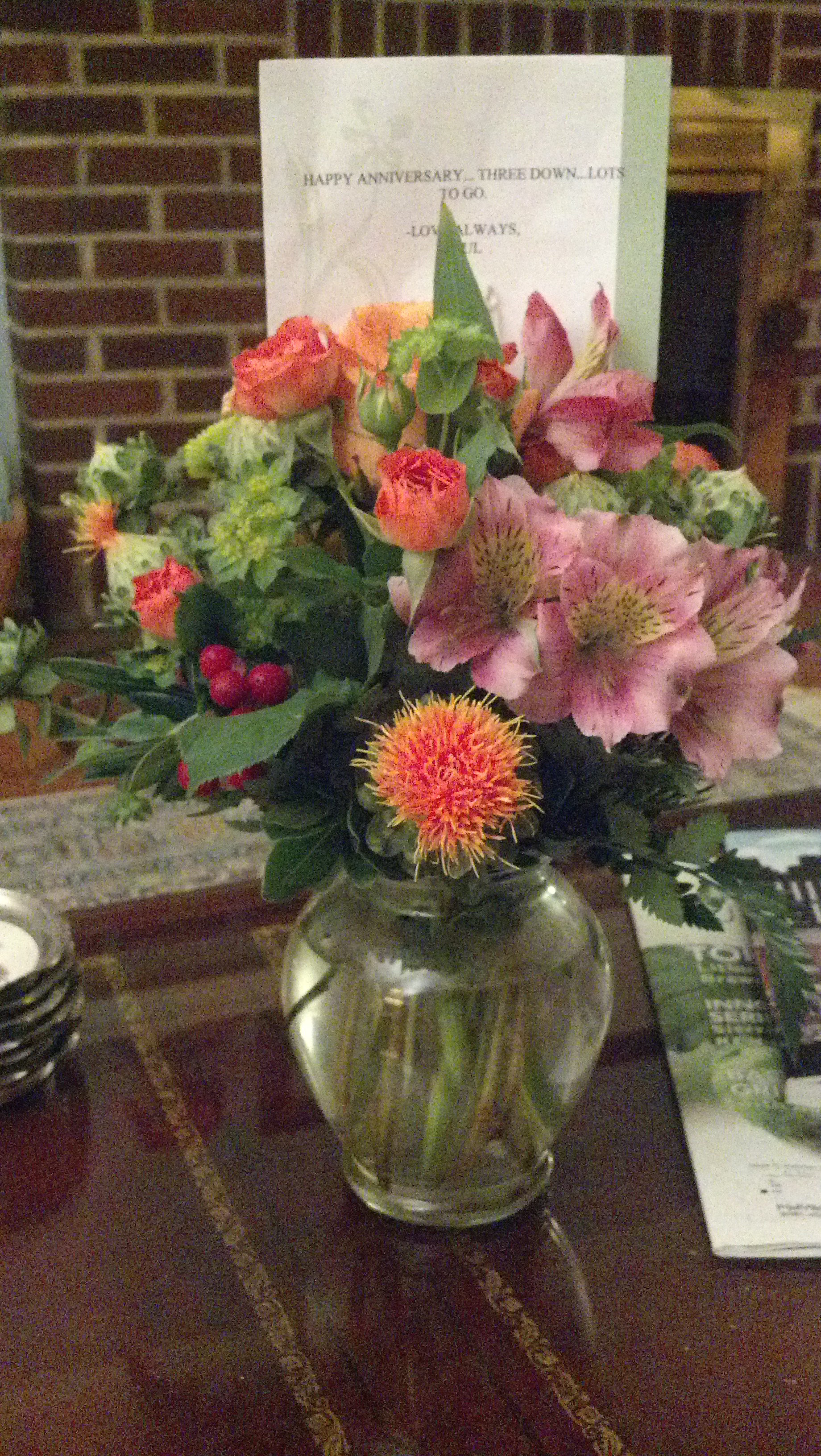 It’s not the romantic anniversary that most people would plan, but I had such a good day that I’m having trouble coming down from the high. And it wasn’t totally devoid of romance. And the flowers I was given didn’t hurt either.