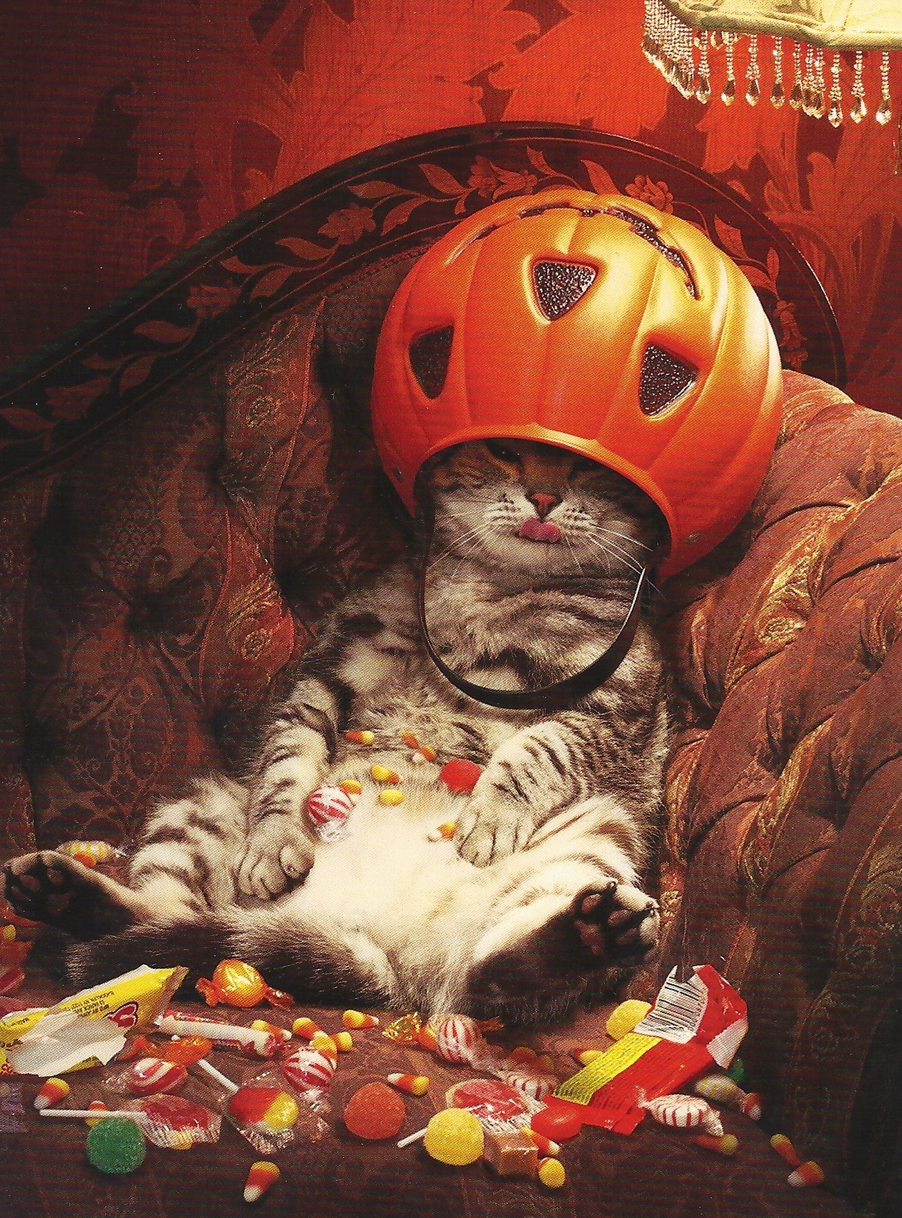 Halloween was boring at our house this year. I’ve been working crazy hours so the pumpkins and fall leaves and other assorted decorations didn’t get put out, save for our candy holder. Oh, and I dressed like a peacock for the day.