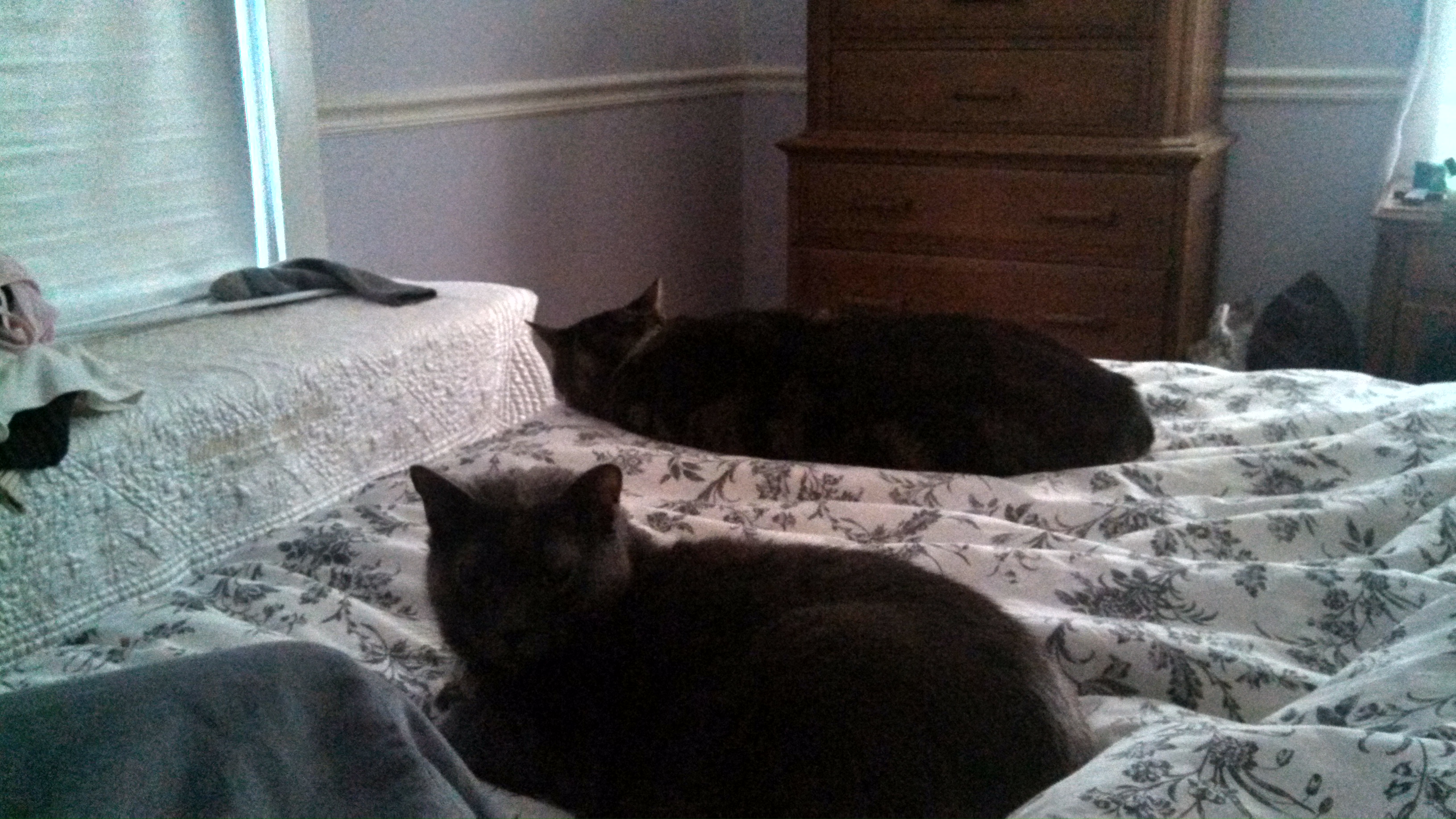 This is what the Man woke up to, and Luna looked perfectly furious that her peace had been disturbed. I constantly forget that they have such a hard life.