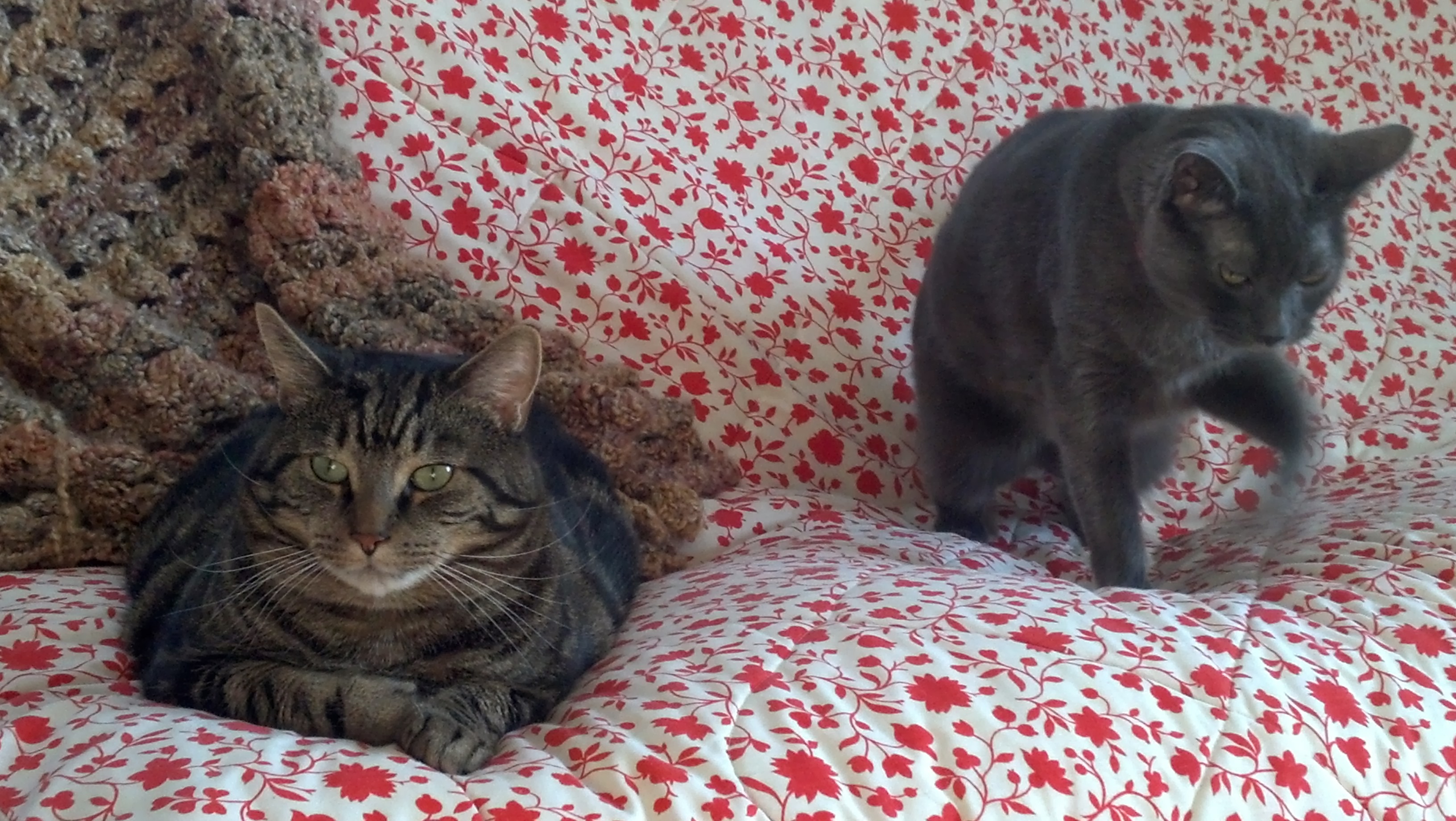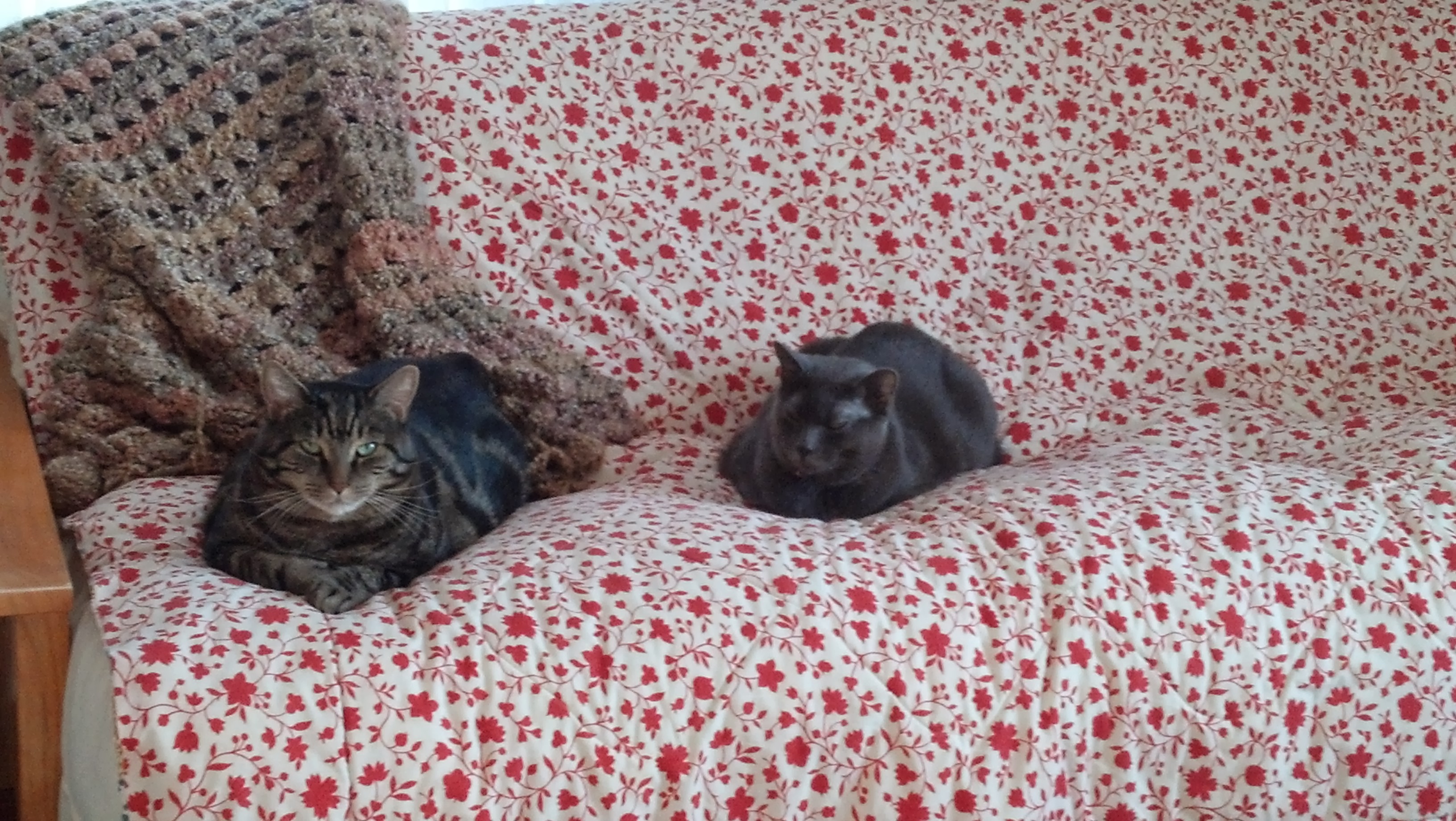 Both cats. LAYING NEXT TO EACH OTHER. And until I walked into the room they were asleep so I had to grab my cell phone and quickly snap a pic. So that I couldn’t get more photographic evidence, Luna quickly decided to leave…