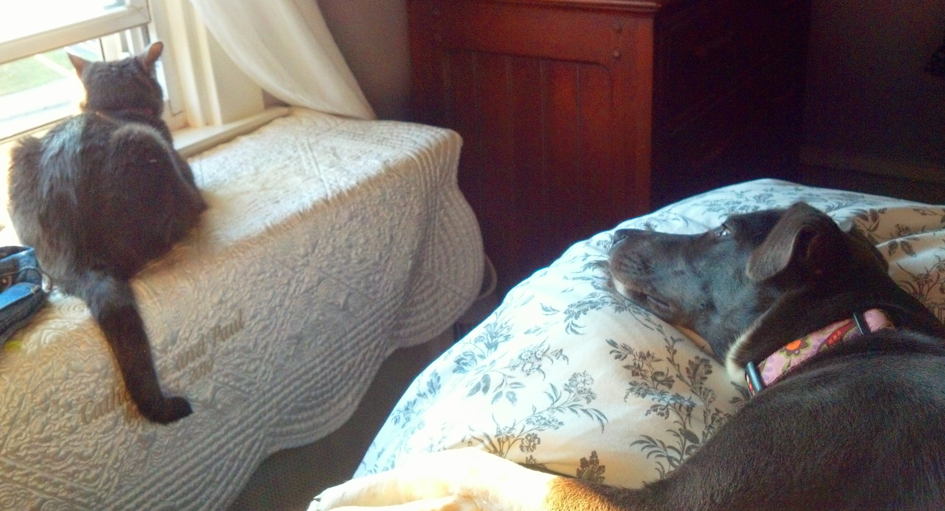 Luna knows that Abby follows her around endlessly, trying to be friends, but frankly she could care less. Now that the fall weather is here and the temperatures have dropped, our bedroom window stays open pretty much all the time. And Luna is happy as can be.