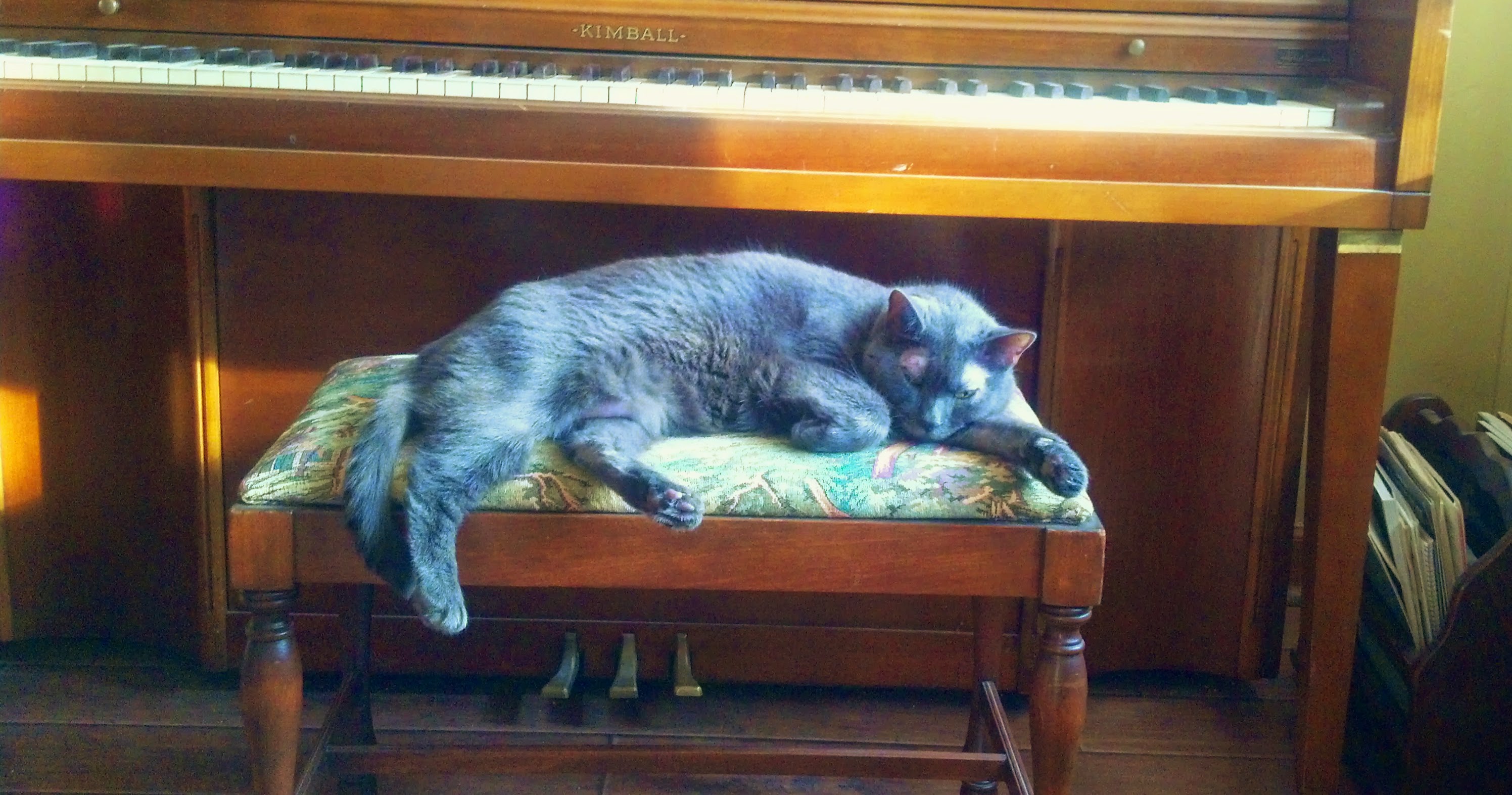 Luna has definitely been enjoying the fact that I’m uncovering the furniture and she has access to all her favorite rooms now. She was quite happy that she had one of her favorite perches back – the piano bench.