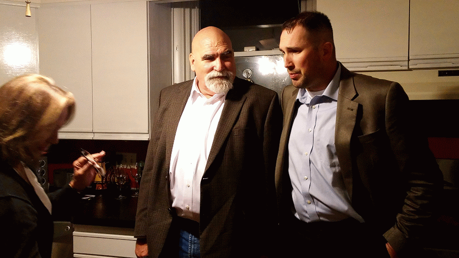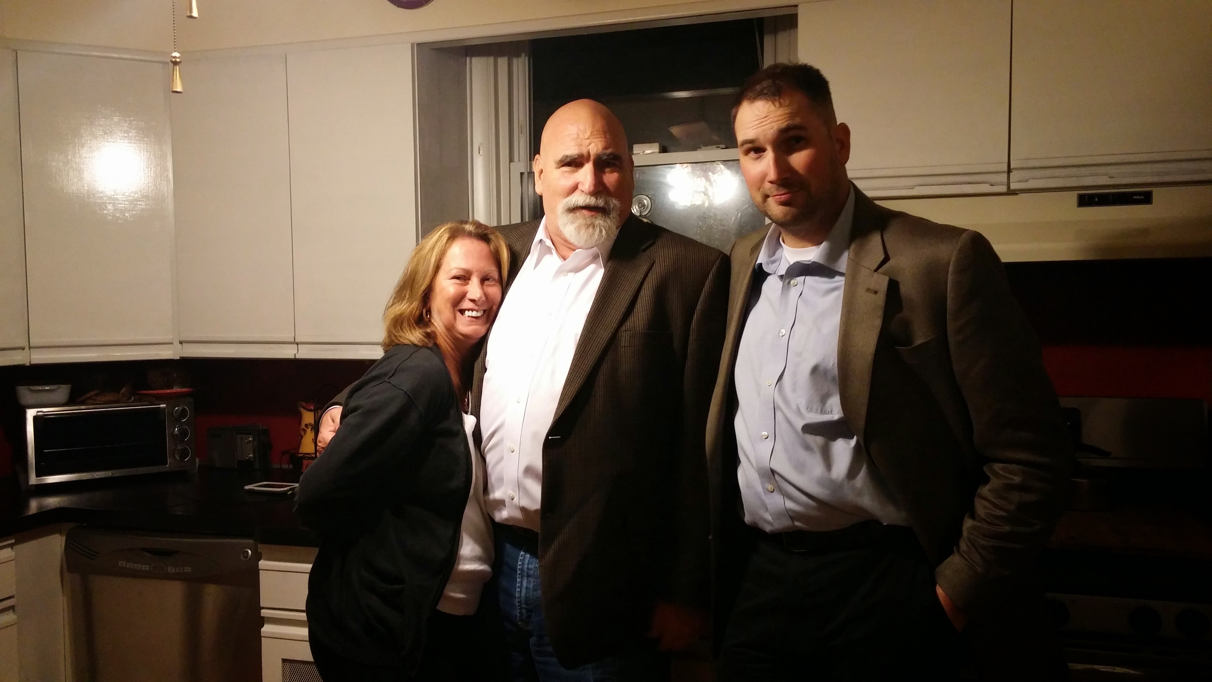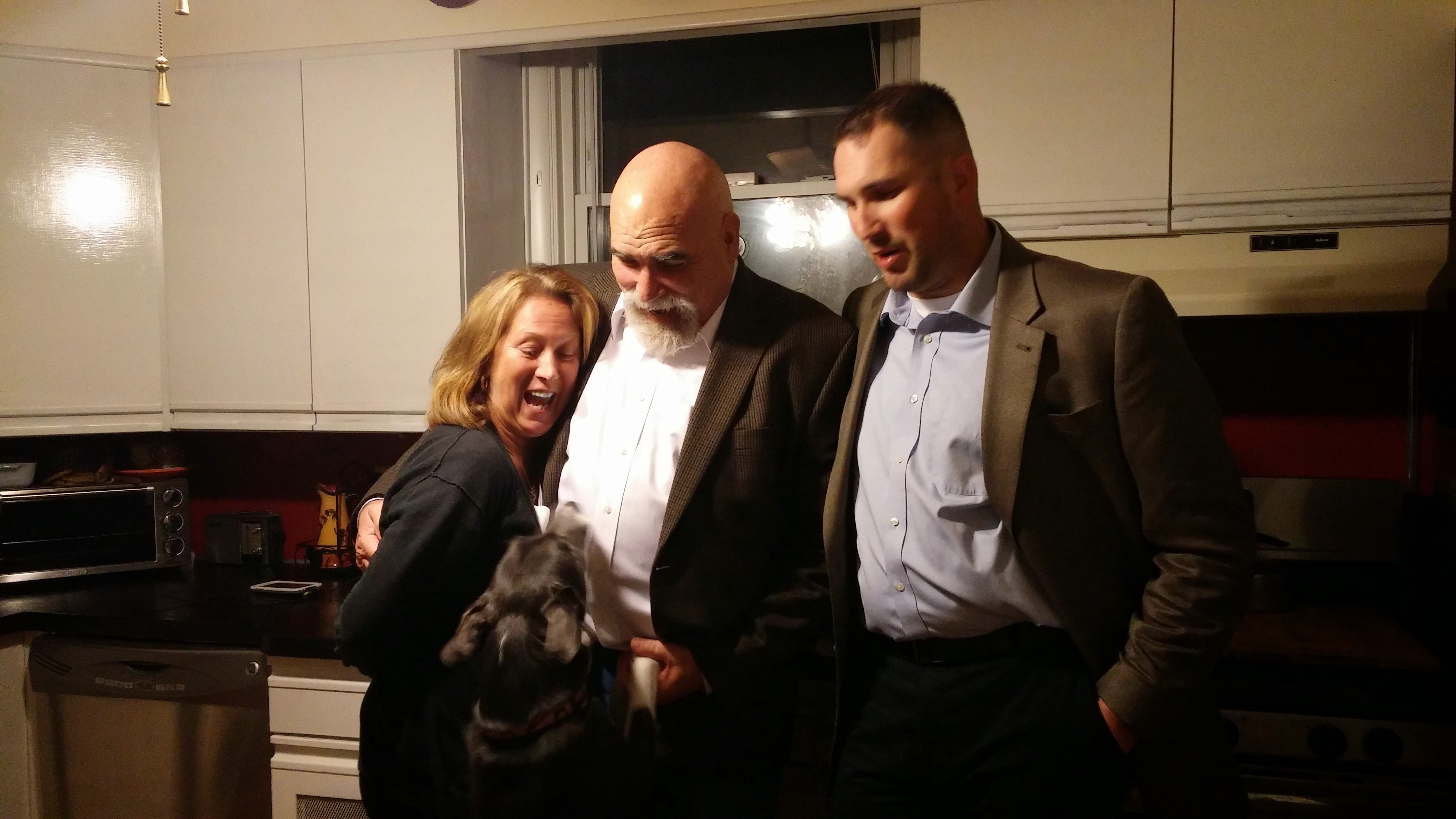 The Man’s parents came down for a visit on Thursday and are staying with us for the weekend! Abby couldn’t be more excited to have more human playmates. We were all together in the kitchen talking when I realized The Man and his dad had worn similar outfits so, of course, I had to torture the three of them with a picture with they humored me with…