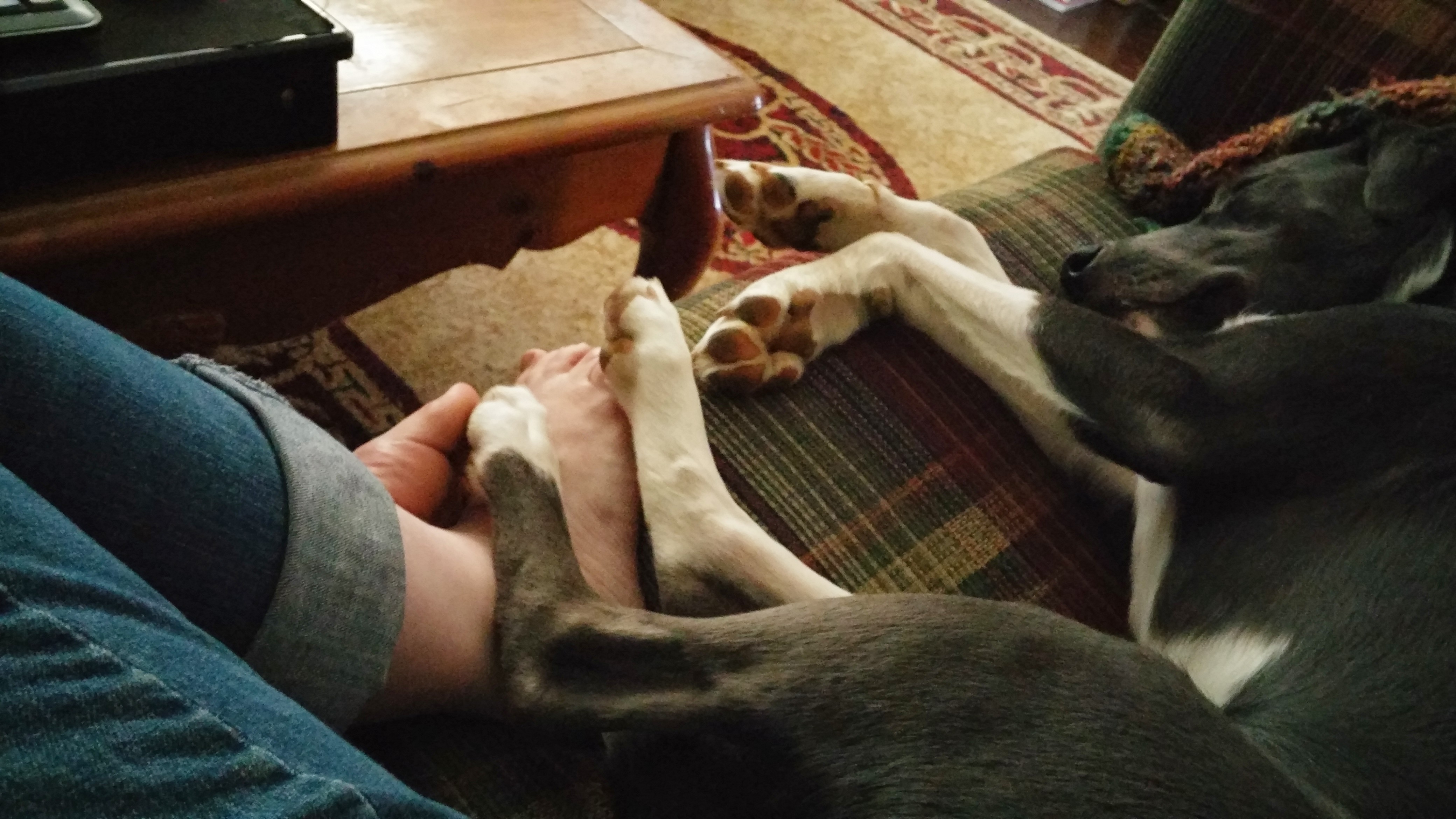 If you had told me that we’d be celebrating having Abby for a year I wouldn’t have believed you. I can’t believe how quickly time has gone! Last year, the Man was still sleeping on the floor outside her crate so she wouldn’t cry all night, and we were fighting with baby gates and pee accidents. Then also, of course, was figuring out that her legs are ridiculously long and lead to LOTS of trouble.